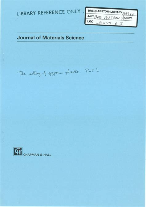 Online PDF The setting of gypsum plaster - SpringerLink PDF Book iBooks Library Genesis